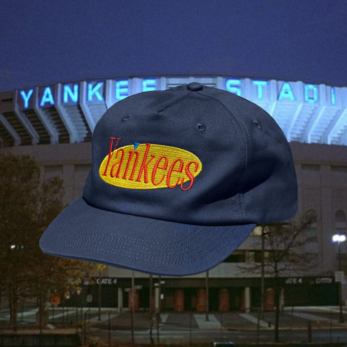Look no further, you have found the Yankees Seinfeld hat. Crafted from high quality cotton, it features an unstructured form for a relaxed fit; like an updated version of your dad’s favorite hat in the 90’s. One size fits all snapback enclosure will keep it tight on your noggin, big heads included. A fusion of two beloved pop culture icons; it's the collaboration we didn't know we needed.